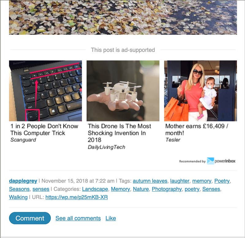 The first question then is, are there, in fact, any scammy ads on WordPress.com – at the end of posts and in emails?
