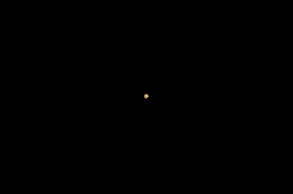So here is the full frame and a crop. In the crop you can see the bushes that obstructed my view and something that was flying by – a bird or a bat, perhaps.