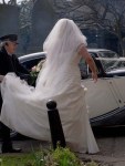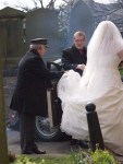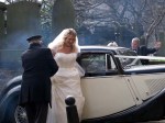The car belched blue smoke and ground to a halt. Out came the bride with a wonderful smile and into the church they went.