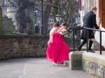 A pocket camera is not the best tool with which to capture a wedding, and when I first saw the car I didn’t know it was a wedding car. But I followed it, and soon it turned into the drive of a churchyard and then ahead I saw bridesmaids dressed in shocking pink.