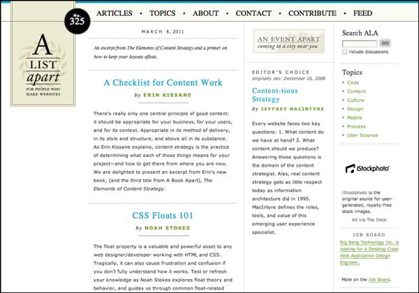 Who reads A List Apart? Well, as it describes itself – ‘For People Who Make Websites’.