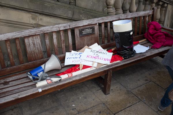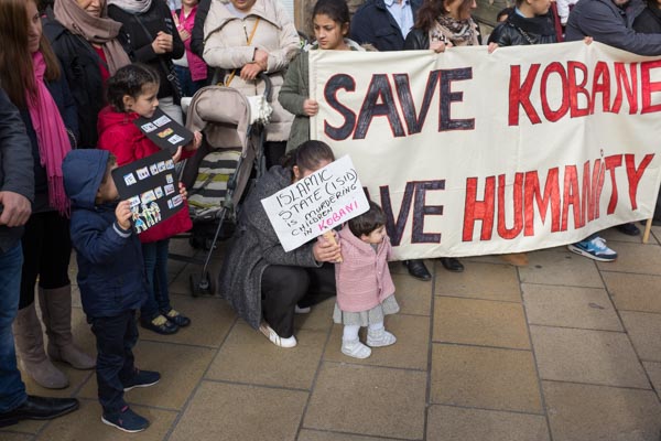 They were also there to protest what they see as the complicity of Turkey in allowing the siege of Kobane to continue unopposed.