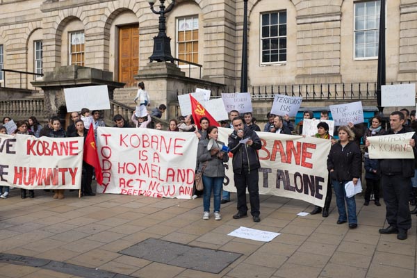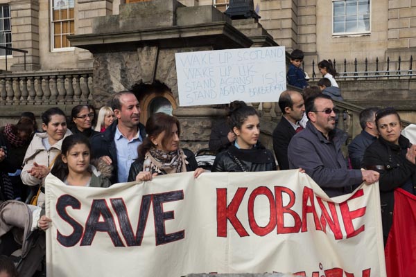 About fifty Kurds staged a protest in Edinburgh today to protest threat to Kobane by ISIS.