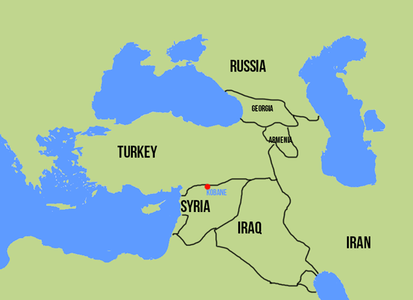 Kobane is in Syria, just a short distance from the Turkish border. People on the border can see the plumes of smoke and the explosions in the city.