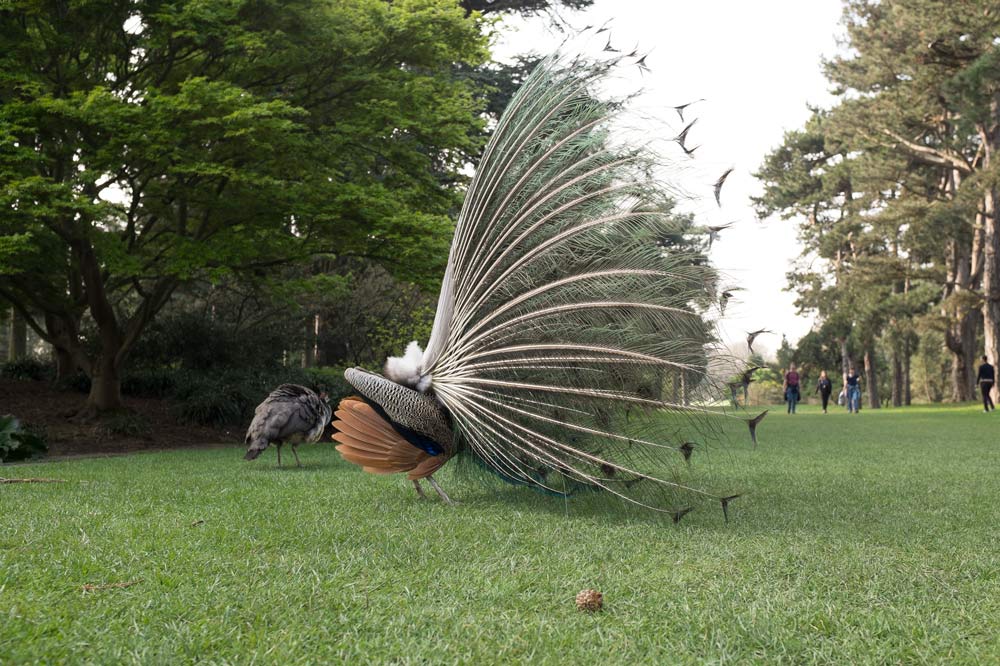 This is Kew Gardens in London where we spent the day a couple of weeks ago. My wife Tamara spotted the peacock and we walked towards it convinced it would skedaddle as soon as we got close.