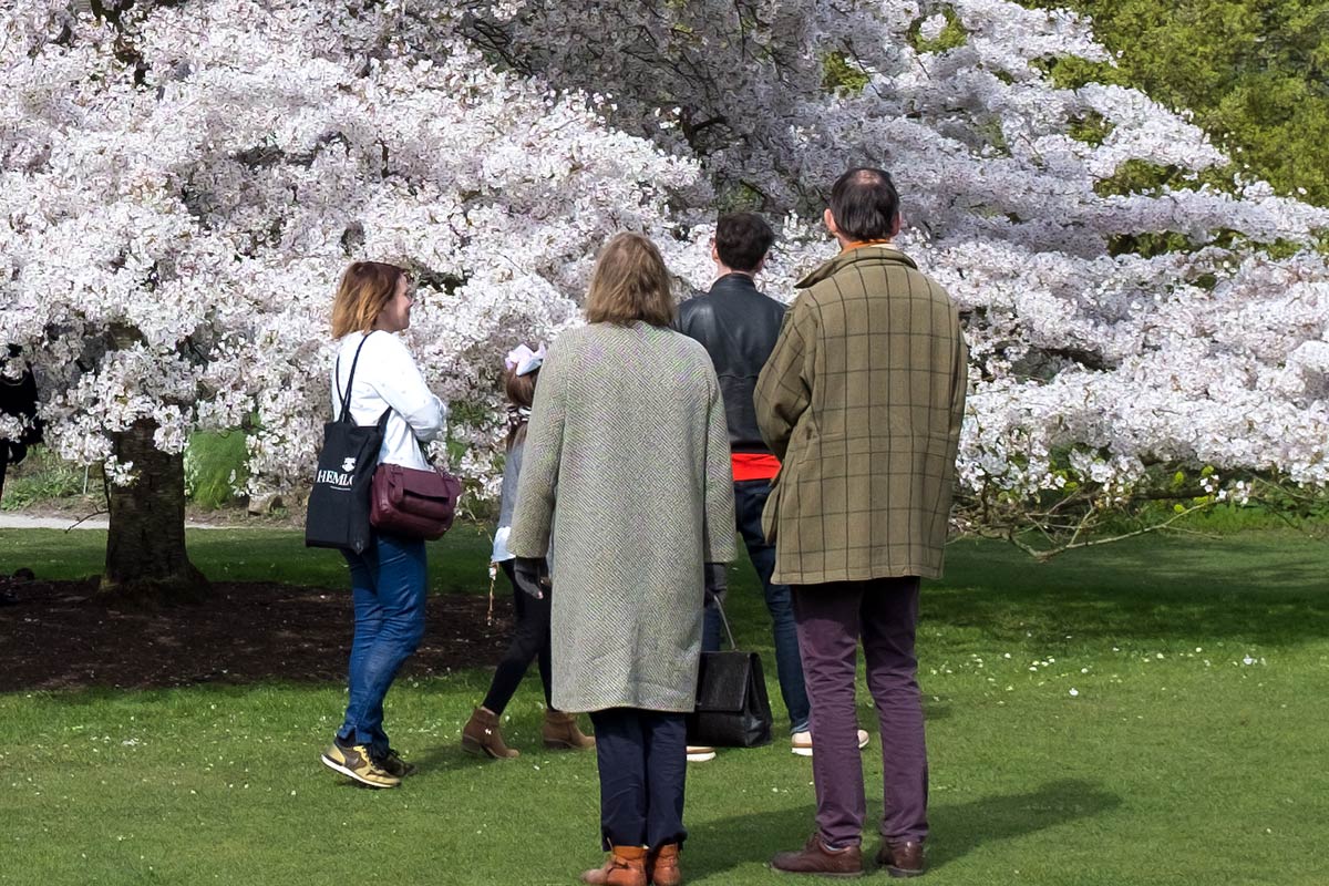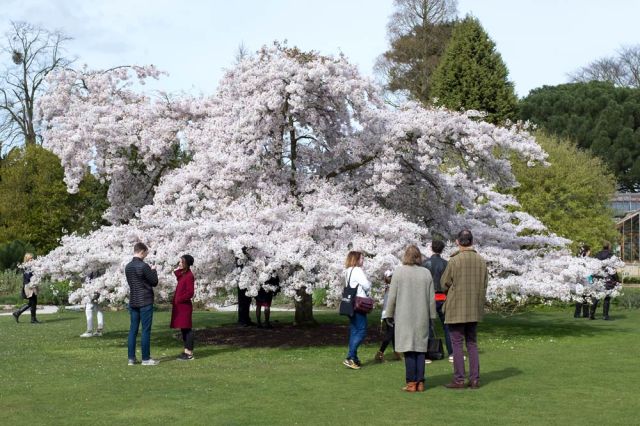 Looking at the tree in Cambridge Botanic Gardens