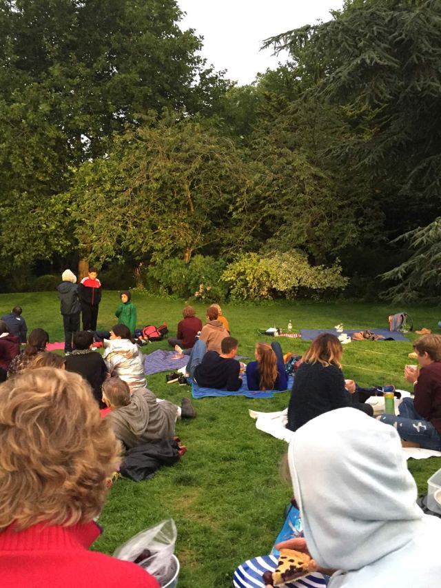 The people immediately in front of me are sitting on chairs, and then beyond them are the people who watched the performance from the grass – sitting on picnic blankets to guard against the damp.