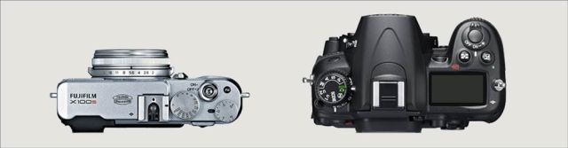 Fuji x100s and a Nikon D7000, side by side and viewed from above
