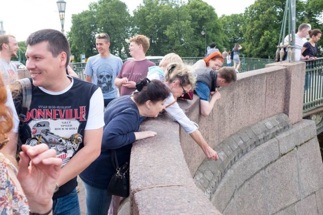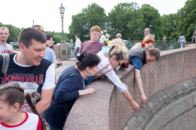 So, for those of use who live far from Russia – and especially what we hear about in the news – here are Russians enjoying themselves throwing coins to Chizhik-Pyzhik’s feet.