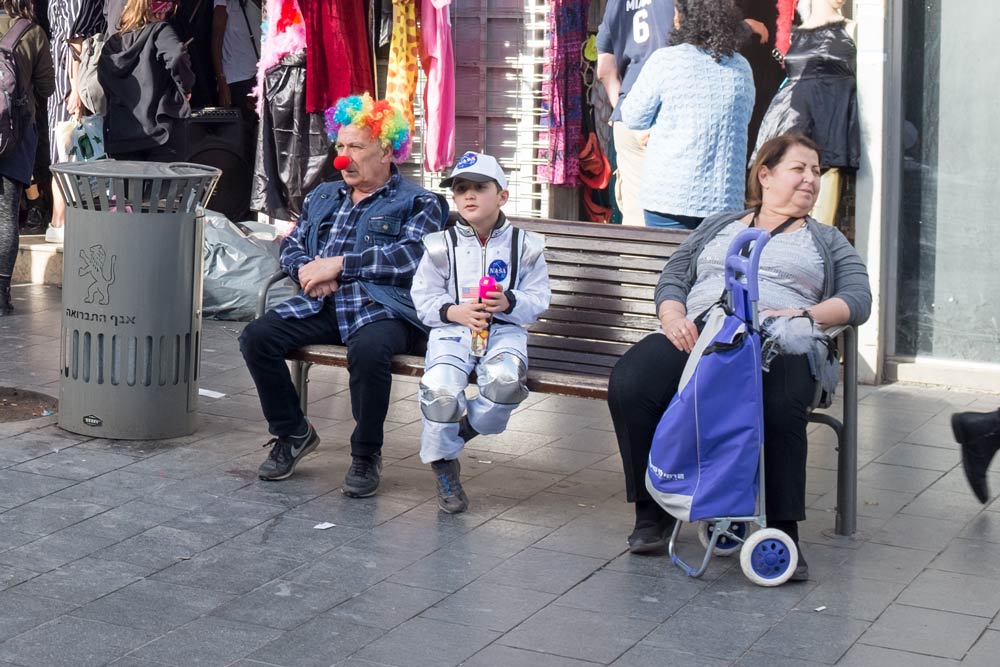 One of the ways that people commemorate it is to dress in some kind of funny clothing and to drink a little. Notice the man on the bench.