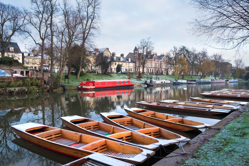 Frost and sun on punts on the River Cam at Cambridge last week.