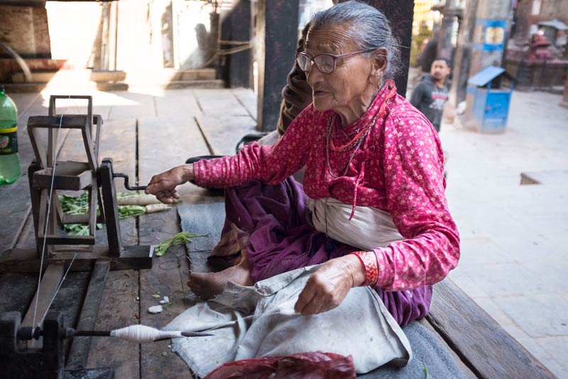She was sitting in grounds of one of the many temples in Bhaktapur, Nepal.