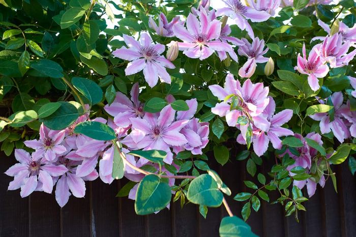 On our walk today we passed this clematis spilling over a fence. As you can see, the sun is out today.