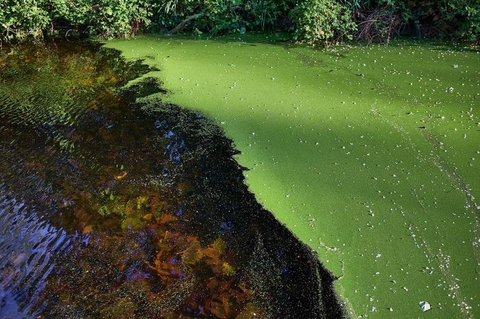 The leaves must be from last year of course (it now being May) and they were in almost perfect condition, not rotted away. Perhaps the algae keeps the oxygen levels low and slows the decomposition?