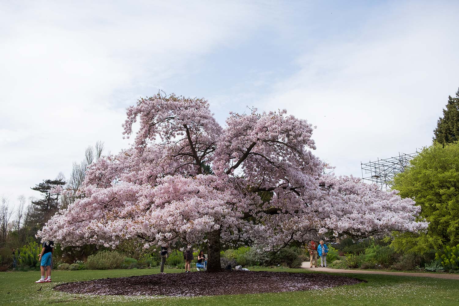 It was overcast today when I photographed this cherry tree in the Botanic Gardens.