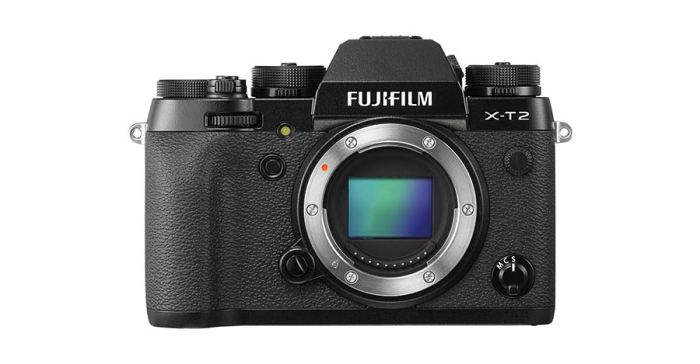 This is a Fuji X-T2, one of the cameras I have, and it has twenty-four-million megapixels. The sensor is 23.6 mm × 15.6 mm, or what is called an APS-C size sensor. It is two-thirds the size of a frame of film. You can see the sensor in this photo of the camera shown without a lens.