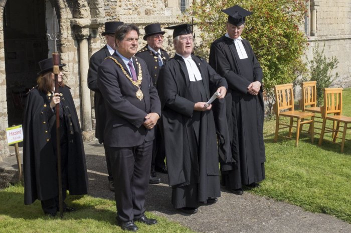 Here’s a photo of the provosts with the Lord Mayor of Cambridge, reading the rules of the fair. The two gentlemen on the right in the photo are provosts, who are masters of Colleges at Cambridge University.