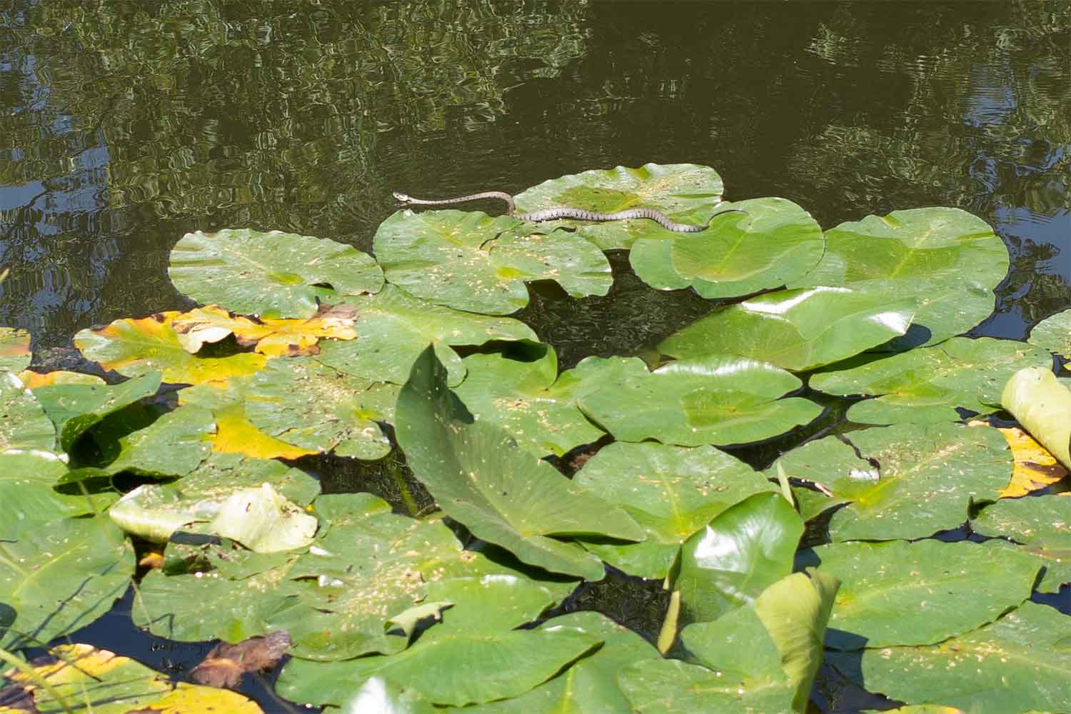 Then it glided to the edge of the leaves as you can see here and then across the water to the next clump of leaves. Seeing it completely in the water, gliding along, was a real thrill.