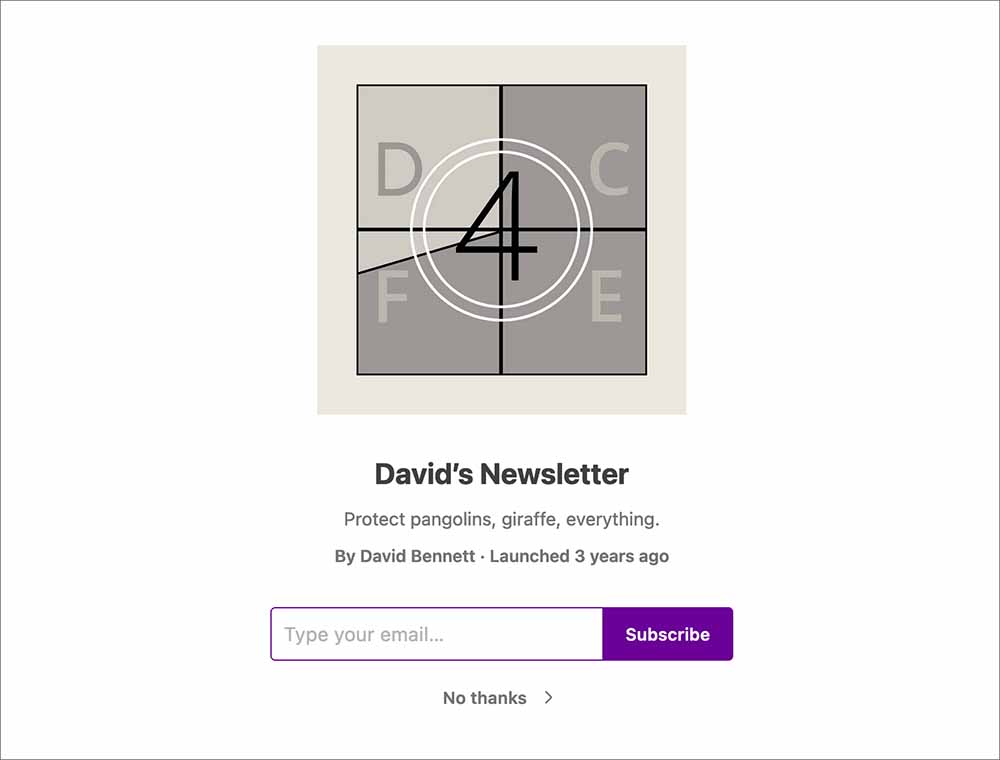 How did I manage to sign up for this? Have I actually sent out a newsletter on Beehiiv? Don’t know. I should check. Again, a remarkable similarity in appearance. Maybe the first to break ranks and make a newsletter sign-up page that is les minimal, will take the prize.