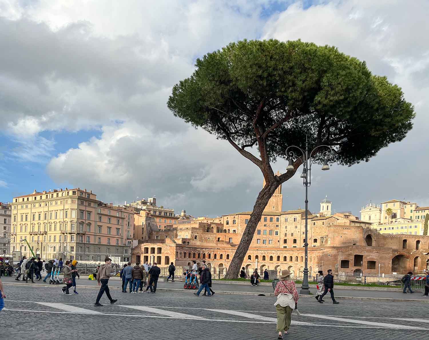 Turn around in any open view of the centre of Rome and you will see architecture spanning thousands of years. And somewhere in the view you will probably see stone pines.