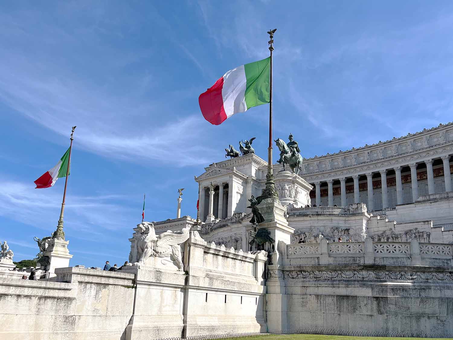The Monumento Nazionale a Vittorio Emanuele II, or the Victor Emanuele II Monument, is in homage to the first king of a united Italy. It most assuredly does not look like this, because this is a panorama shot. And if you did not know it already, panoramas made by turning the camera (or phone in this case) bring the centre forward and make the outer end retreat.