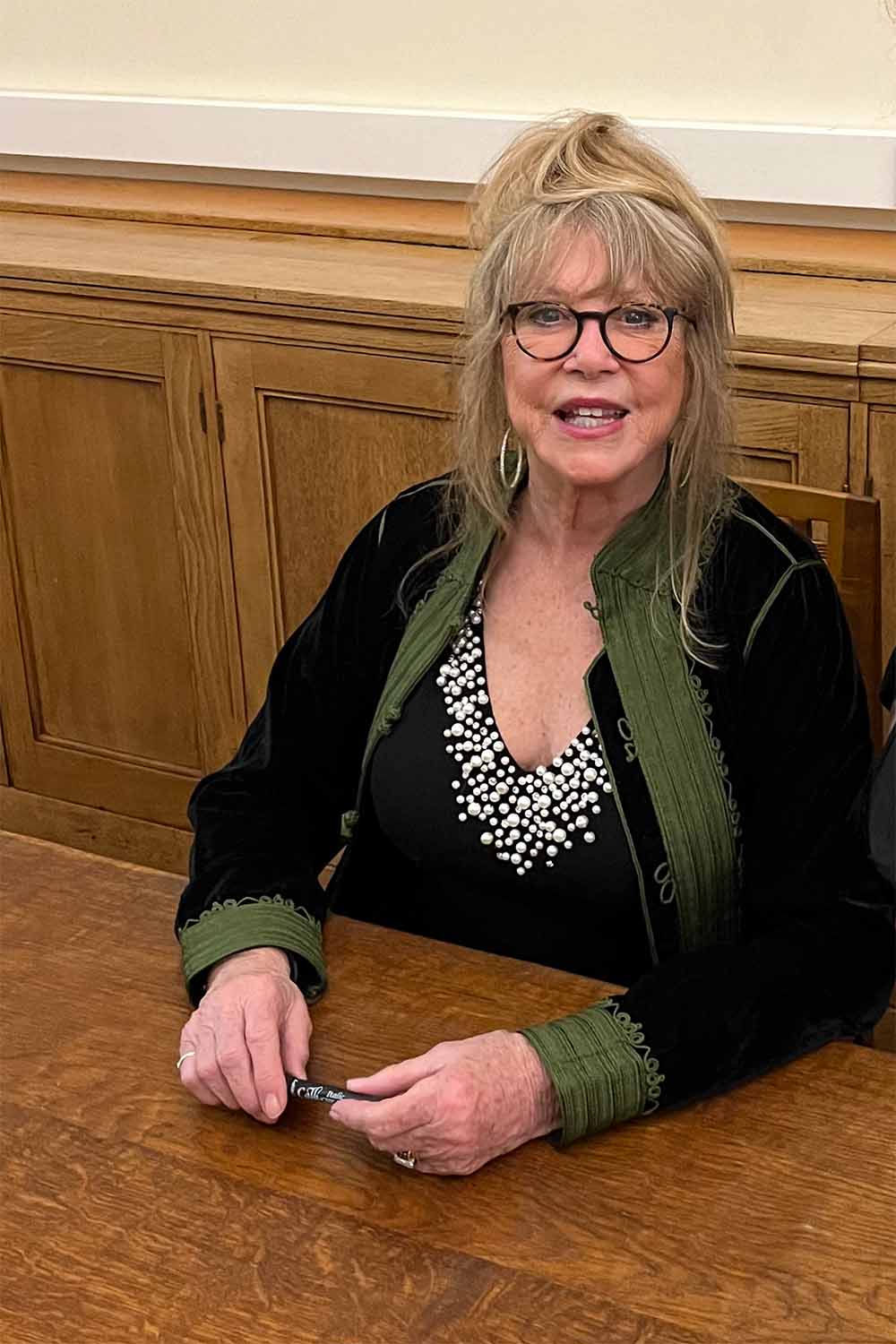 And finally, a photo taken by the woman who was managing the queue for the book signing, taken on Tamara’s iPhone. Again a crop, and one that with the straight-on view looks most like the Pattie Boyd of fifty years ago.
