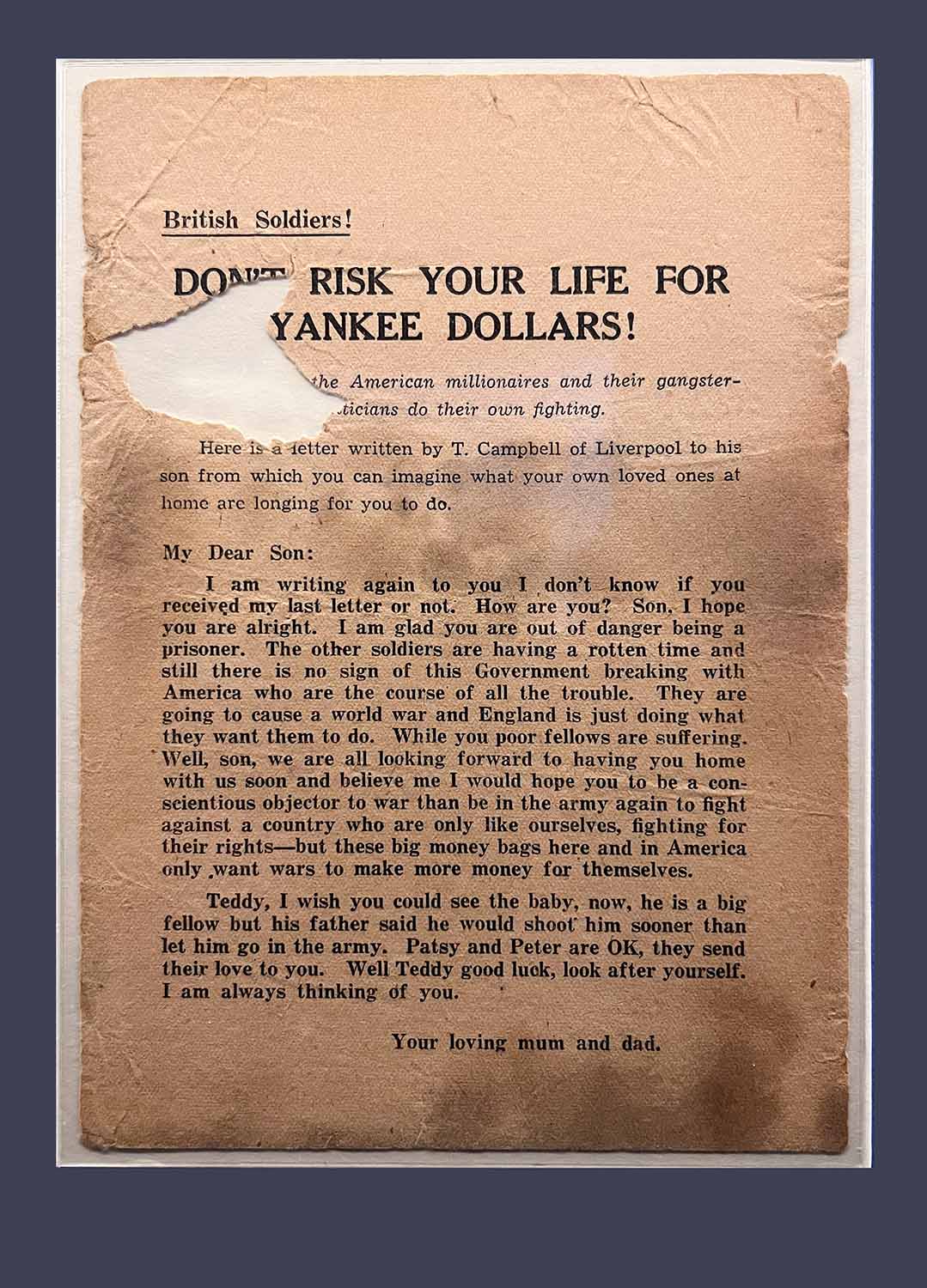 DON’T RISK YOUR LIFE FOR YANKEE DOLLARS!