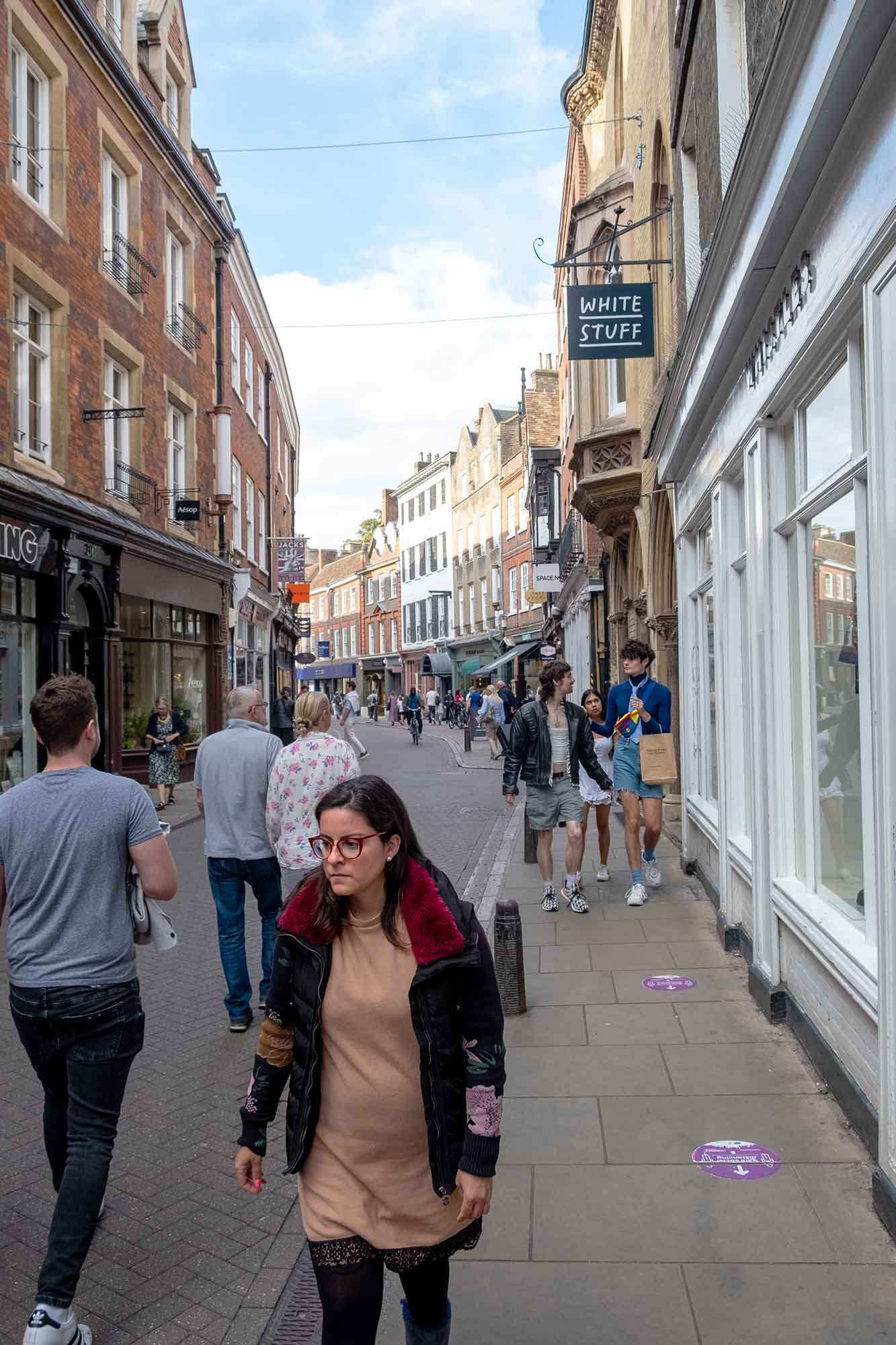 I am really just testing the camera on the street to see whether it does what I want. I shot at 800 ISO and it’s not at all clean. I shot at 1/400th of a second at f5.6 and -1 exposure compensation. I know a lot of people say to underexpose to retain detail in the highlights, and there was a reason to do that here, namely that I focused on the ground at about the distance that the woman would be in the foreground, and I knew that if I didn’t use exposure compensation then the sky would be blown out when I raised the camera. But this is a crop and you can’t see the sky. And still I think that the shot would have been cleaner if I had not underexposed.