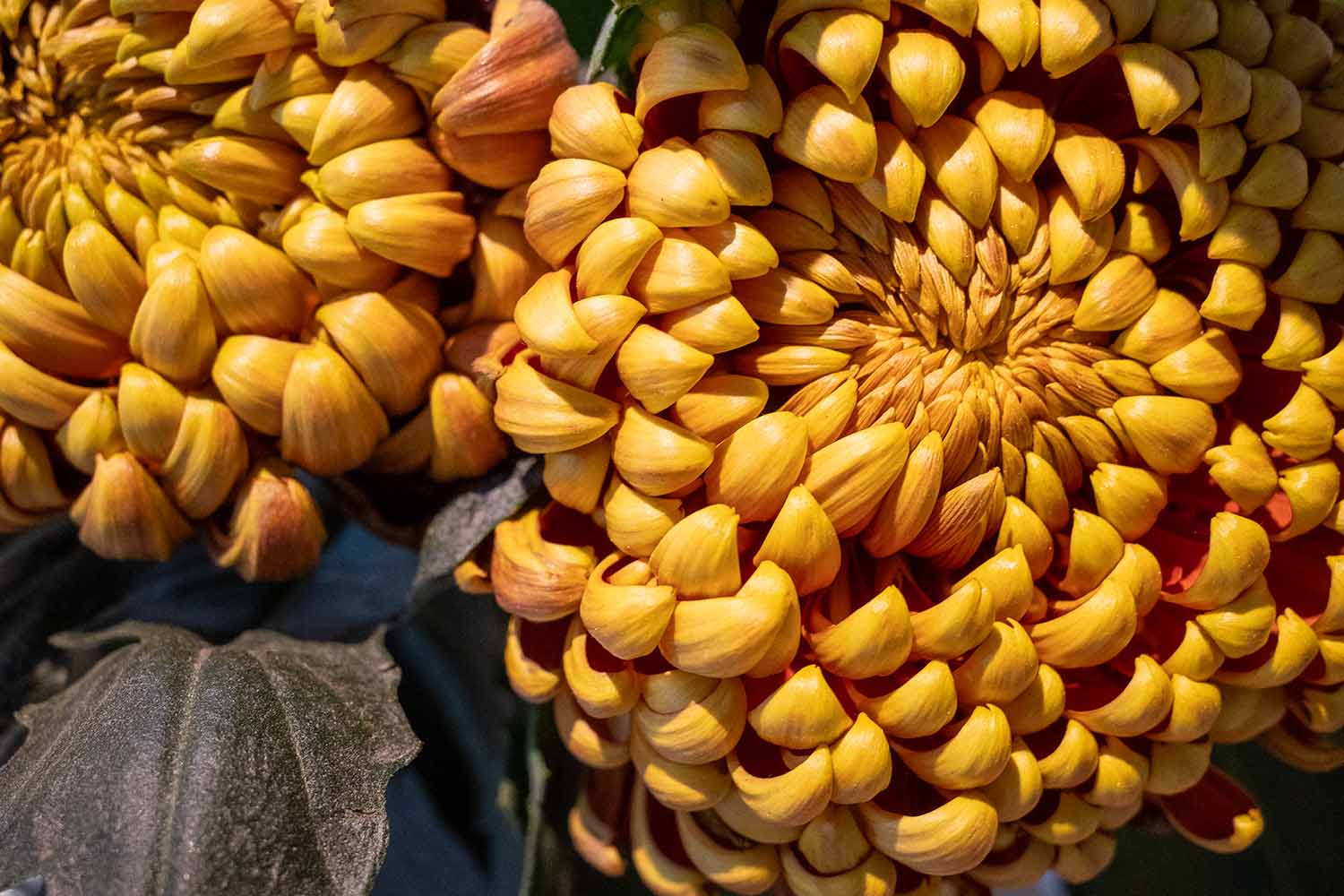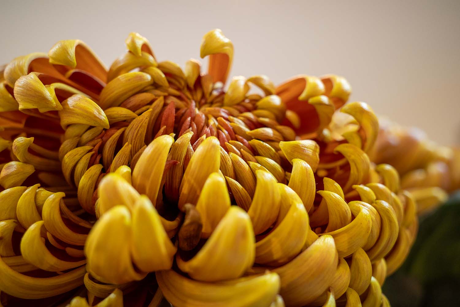 These are from the flower stall in the market in Market Square here in Cambridge. I was attracted to them because I had never seen such dark petals on a chrysanthemum. To my eye the way the petals are curved over makes them look like bananas or some kind of nut, or something with a shell, In fact they are delicate.