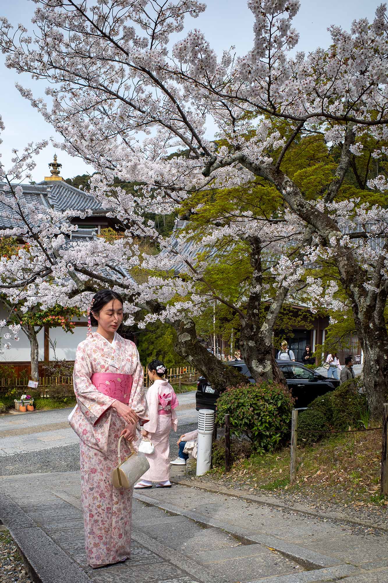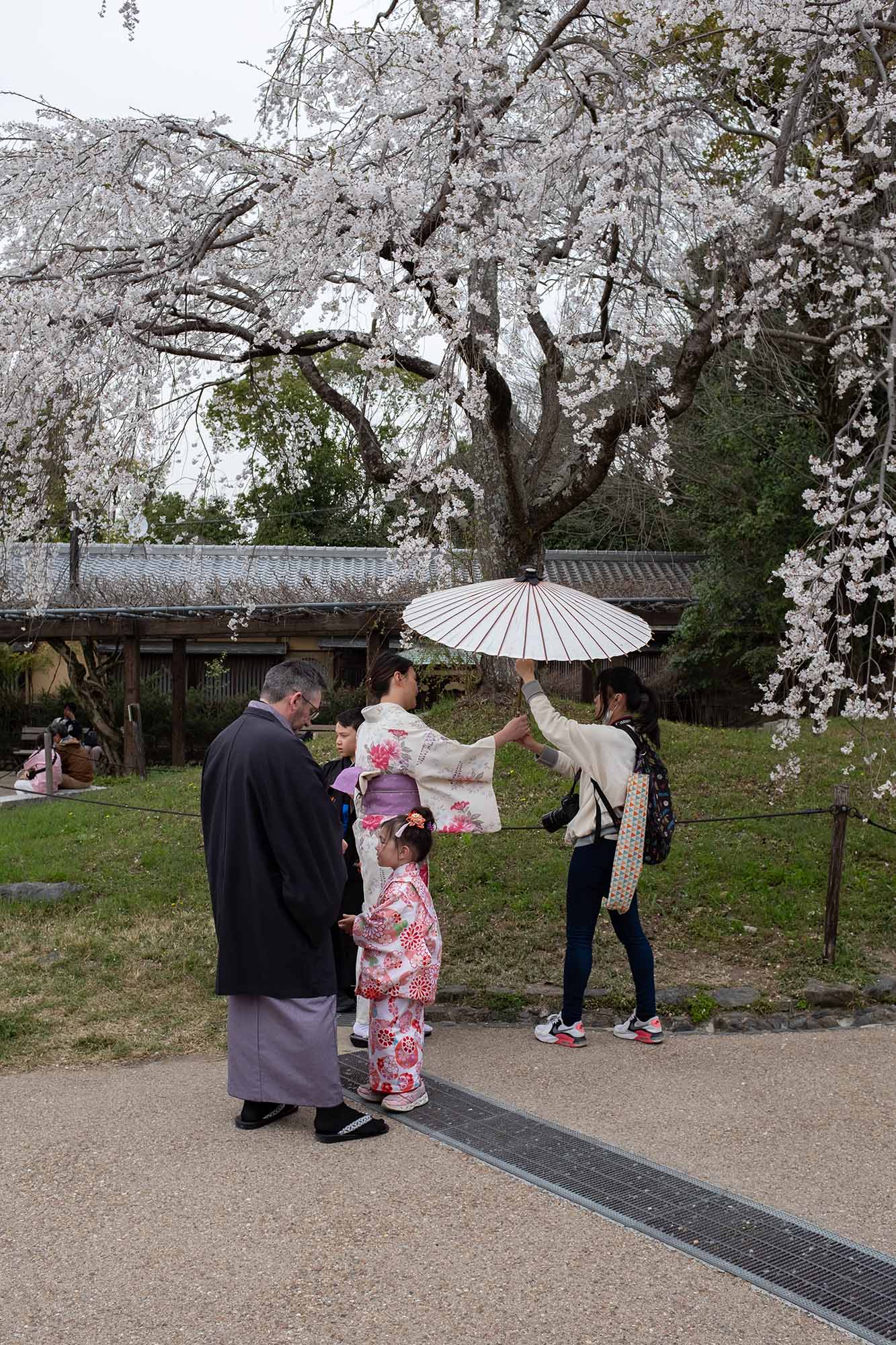 We saw lots of women and men in Kyoto dress up in kimono. When the blossom appeared we saw lots of women and men in costume pose against a backdrop of cherry blossom to have their photographs taken.