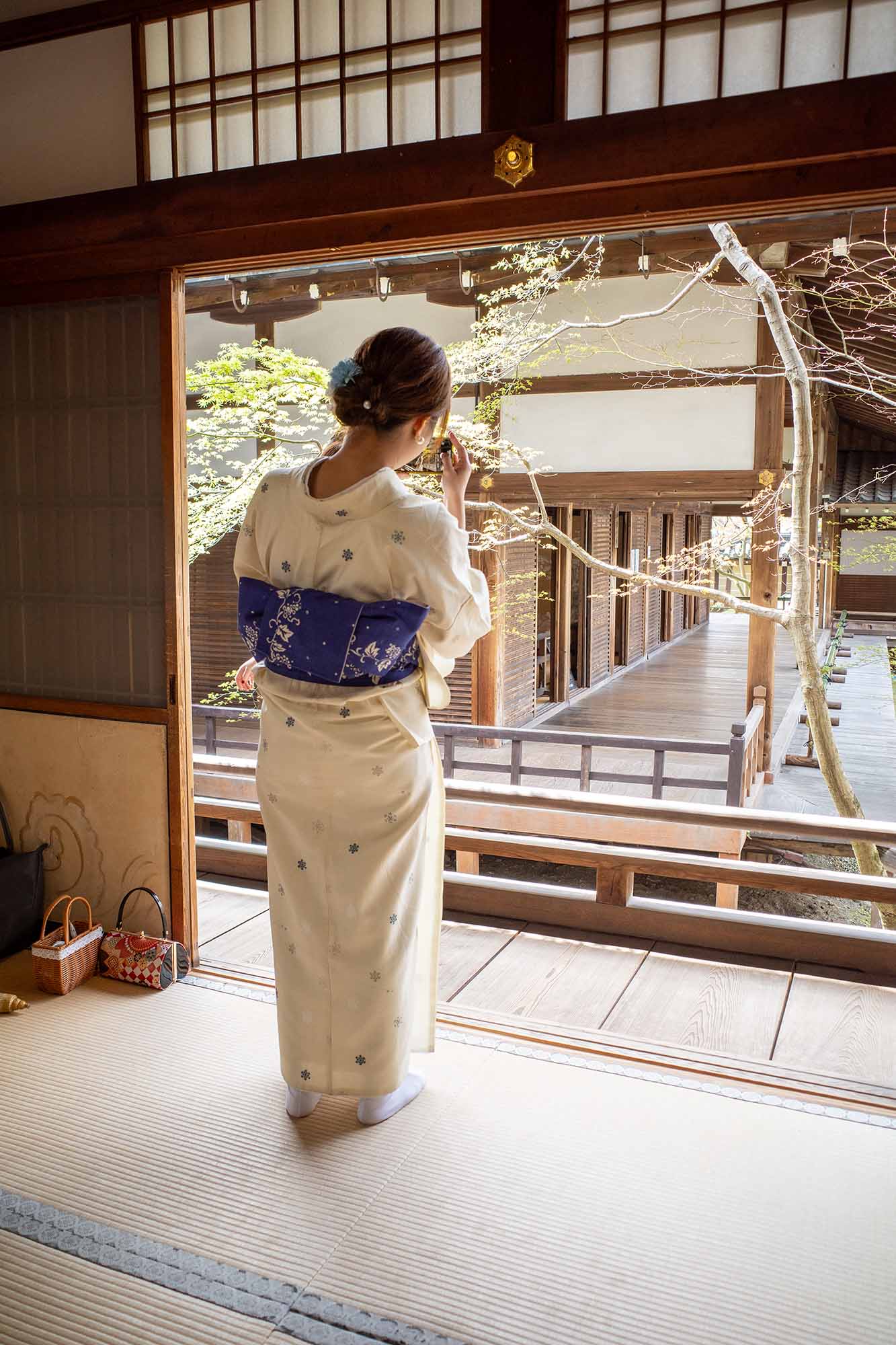 This young woman and her companion took turns at photographing one another and the temple grounds at Eikan Do. The parked their handbags in the corner of the room while they posed and photographed.