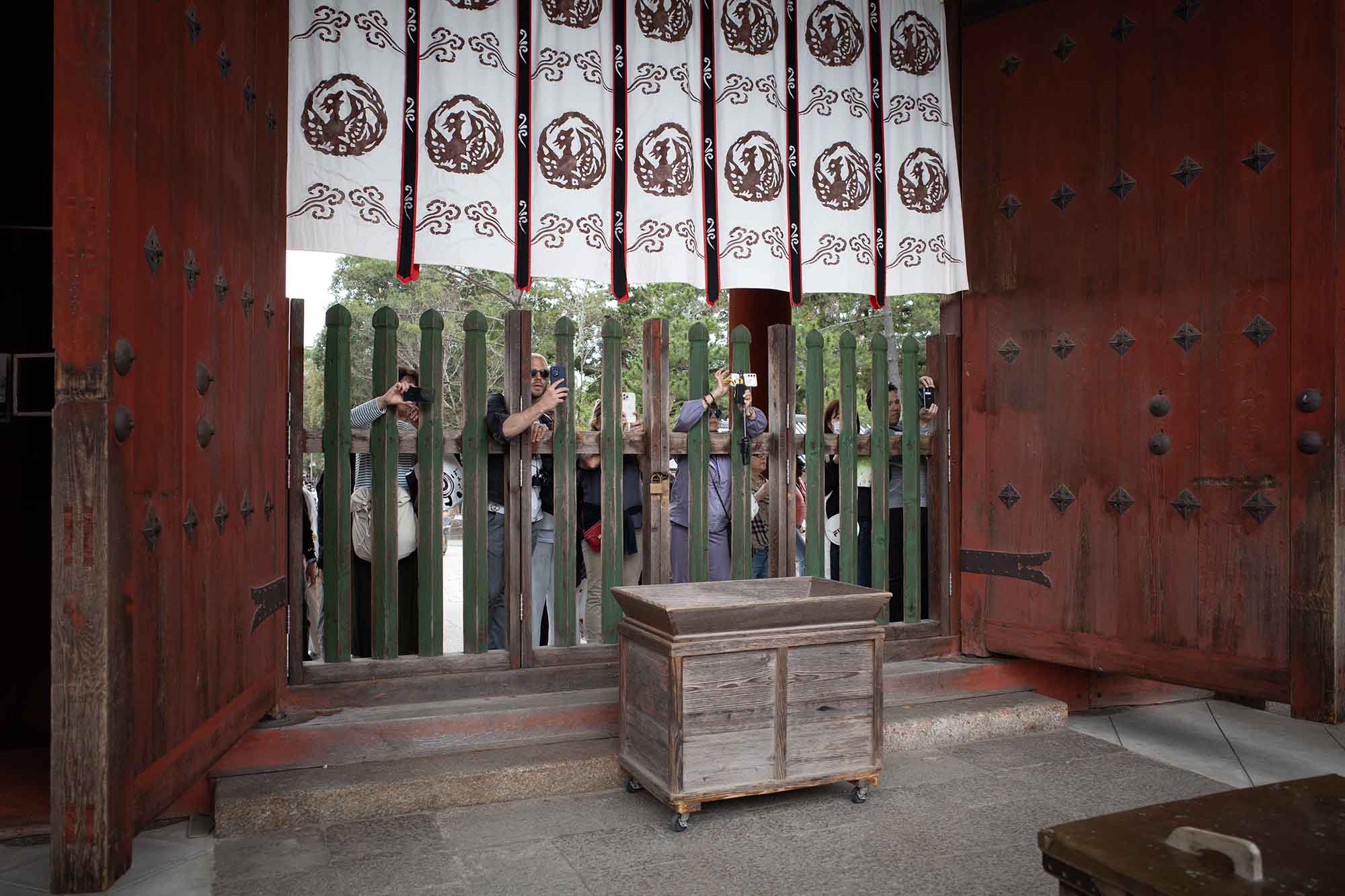 How many times have I poked my camera or phone through a fence or gate to photograph something. This time I was – along with hundreds of others – on the other side of the gate. And like the photographer I am, I turned my camera to photograph the photographers. There is an entrance fee for getting to the spot I was at and for entering the temple. So did the fee stop these people? Were they too tired to get a ticket and walk the length of the walkway to the temple? Were they only mildly interested in the temple, but enough to snap it on a phone?