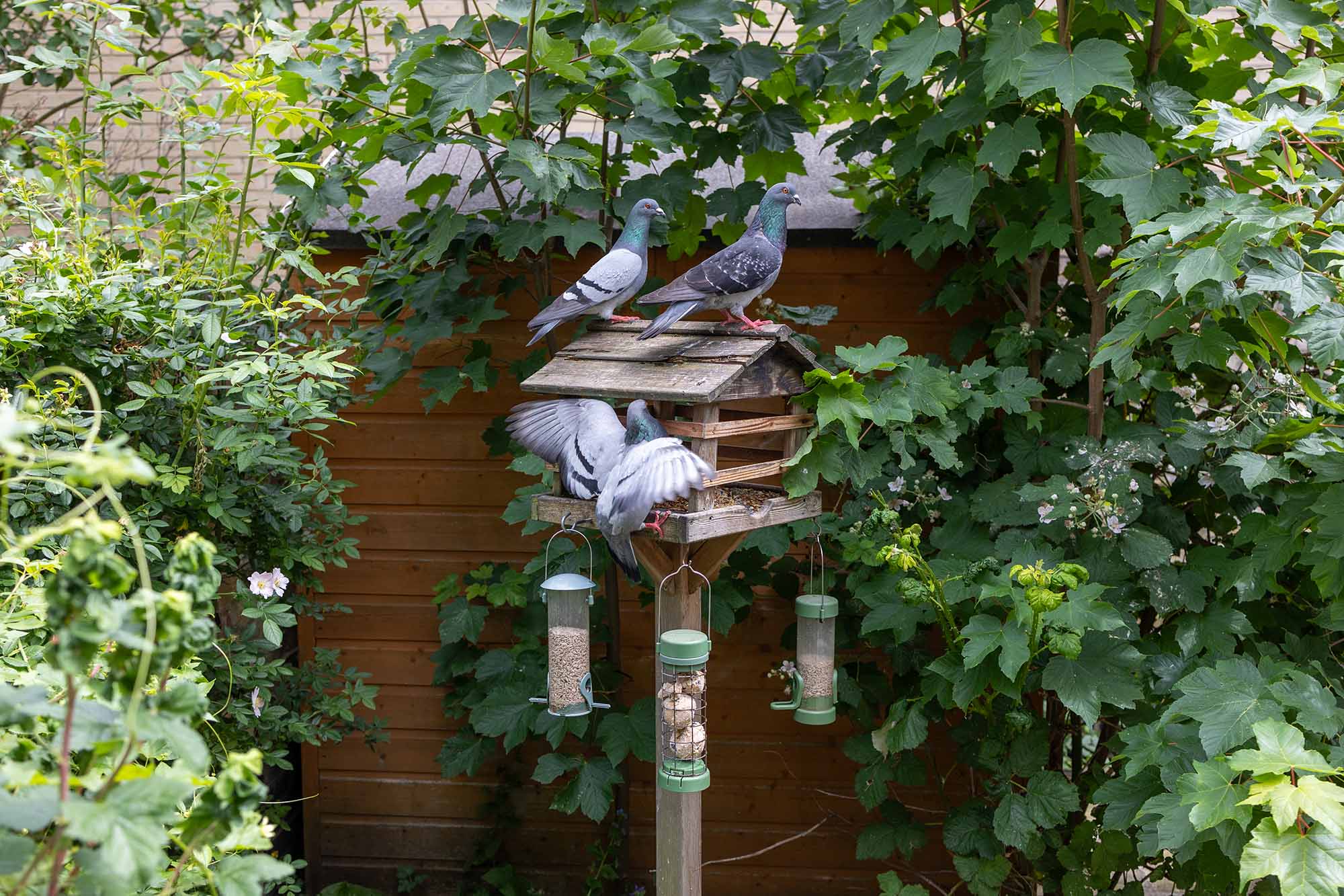 The pigeons are at the bird table again. They are so enthusiastic and hopeful. The bars prevent them plopping down onto the table and scoffing the lot, but they try every way to hang on and sweep a few seeds their way.