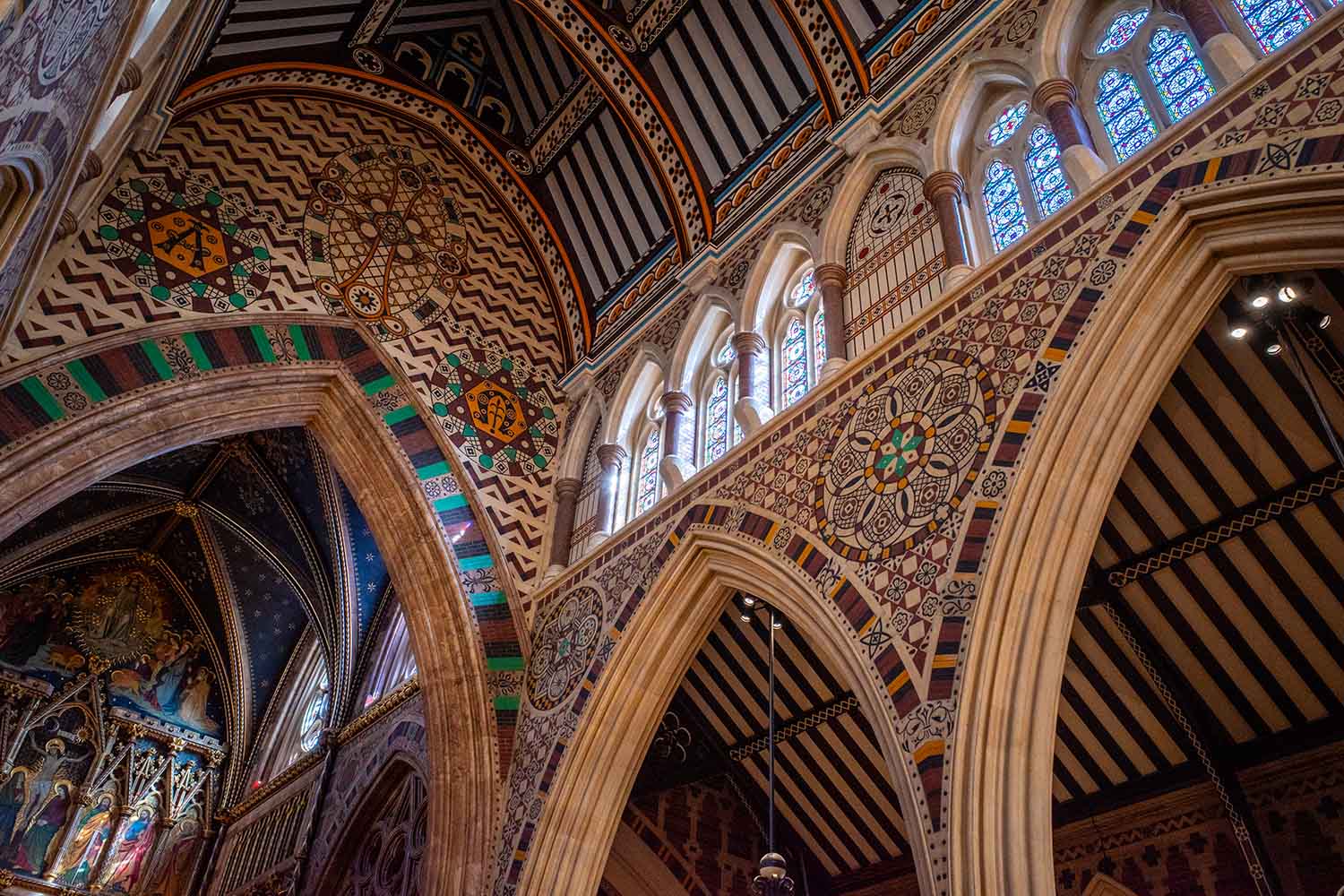 It turns out that it is Anglo-Catholic, designed under the influence of the Oxford Movement that argued for the reinstatement of some older Christian traditions of faith and their inclusion into Anglican liturgy and theology.
