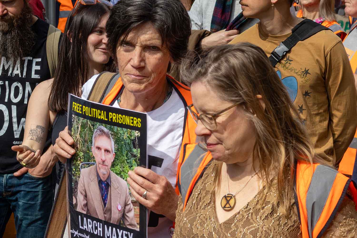 In the photo below, the man in the poster (Larch Maxey) is in prison for causing a public nuisance by conspiring to tunnel under a road with a view to preventing the expansion of Heathrow Airport.