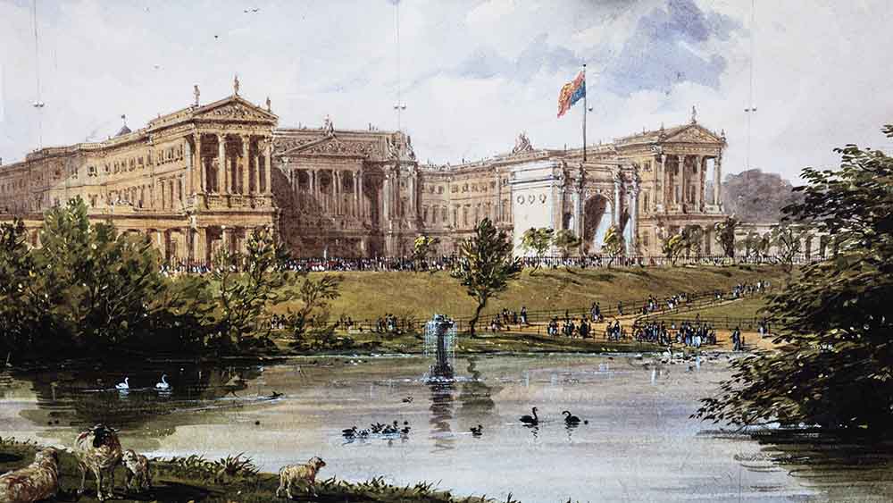 In the 1840s, Blore was commissioned again to expand Buckingham Palace for Queen Victoria and Prince Albert. Marble Arch was overshadowed by the palace’s grand new East Front, so in 1851 the Arch was moved to its current location. During the 20th century, the widening of roads left it isolated on a traffic island, separated from the park .