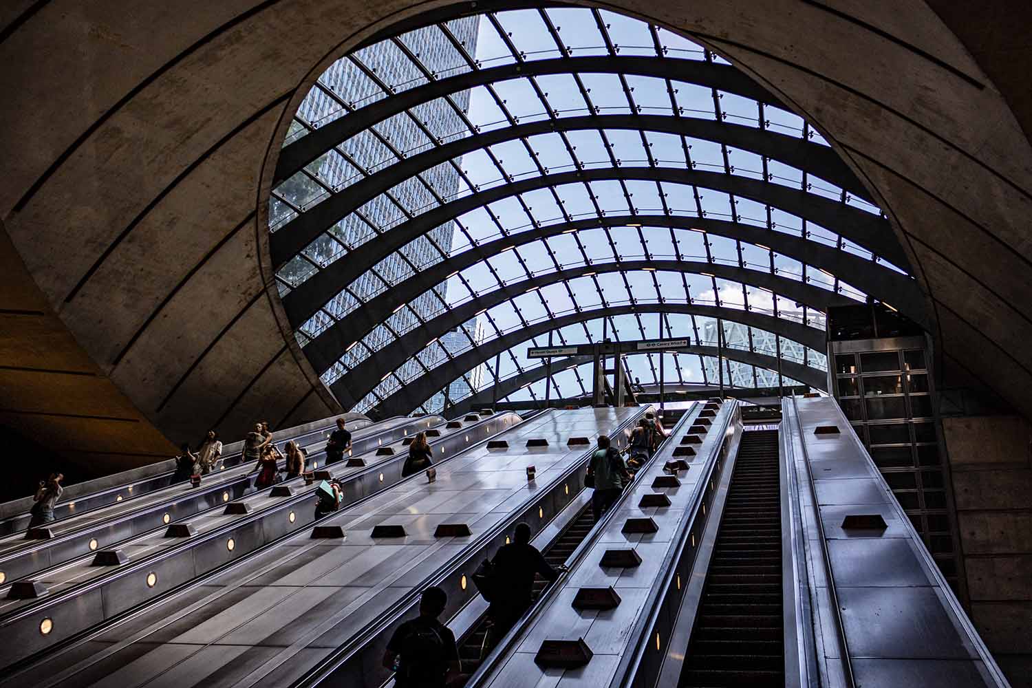 These are the escalators that lead onto the plaza at Canary Wharf.