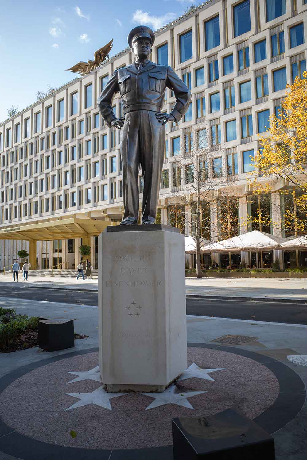 Now the statue is unveiled and so is the one of Dwight D. Eisenhower at the other side of the Square. Eisenhower was president of the United States from 1953 to 1961 and his reputation has only grown over the years.