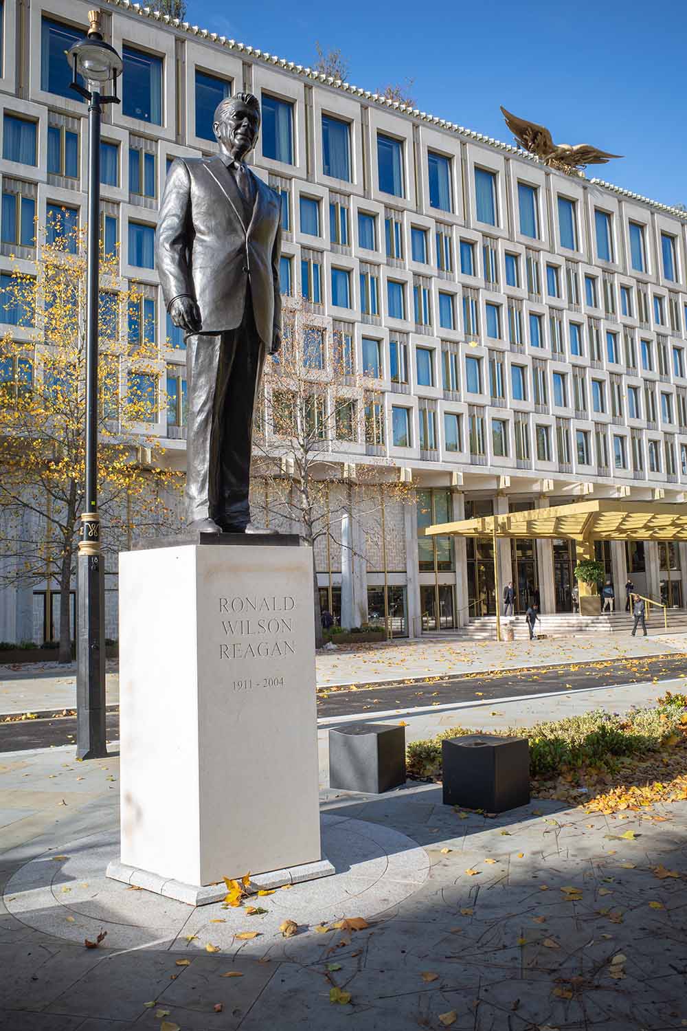 Back in June when I walked into Grosvenor Square I saw this Statue of Ronald Reagan on a plinth outside the former US Embassy in Grosvenor Square, London with the statue bound in plastic sacking and red cord.