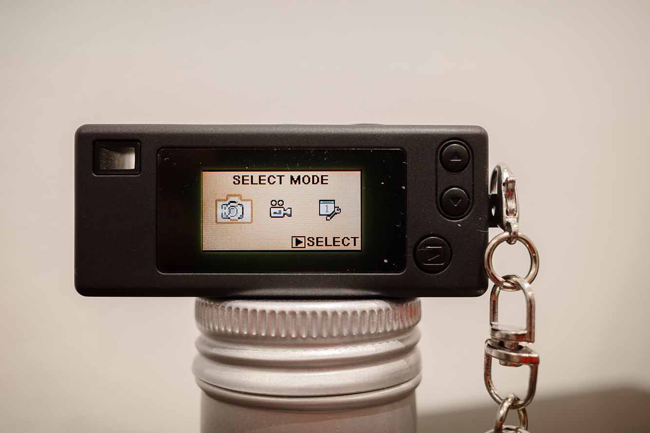 The keychain comes with the camera. And to add a little piquancy to the buying experience, you don’t find out the particular camera style you get until you open the box. There are seven (I think) styles with one of them being see-through.