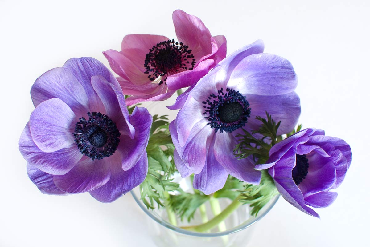 I bought these from Leeds market a couple of days ago. I tried photographing another bunch a few weeks ago, but I left the stems too long and it was only possible to get a shot of one flower. This time I cut the stems short enough so that the flowers would stand up, and that got me this shot looking down on the bunch.