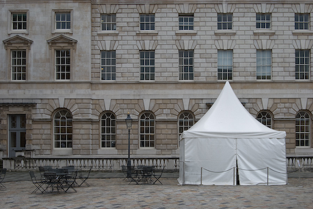 And here is an open-air cafe in the courtyard of Somerset House. The tent flap had not yet been drawn back and the tent reminded me of hussars and campaigns in India that must have been talked about by gentlemen walking across this courtyard two hundred years ago. (The present Somerset House was built in 1780).