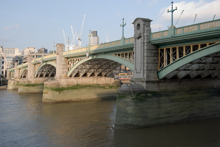 Southwark Bridge spanning the Thames by the Globe Theatre. It was the nearest bridge leading to St Paul’s cathedral before the building of the Millenium footbridge in the year 2000. Southwark Bridge is one down from Blackfriars Bridge, a place that makes me think of the very public display of contempt for the law that was shown by the hanging there of Roberto Calvi in 1982.
