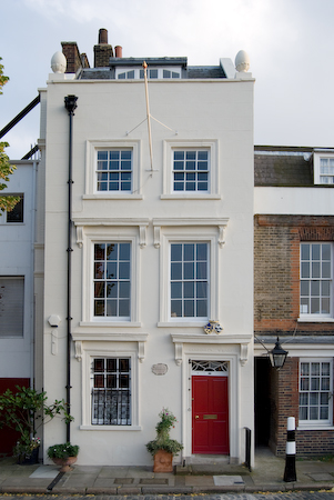 This building is by the Globe Theatre. It says “Cardinal’s Wharf” above the door, and the plaque on the wall to the left of the door says “Here lived Sir Christopher Wren during the building of St Paul’s cathedral. Here also in 1502, Catherine Infanta of Castille and Aragon afterwards first queen of Henry VIII, took shelter on her first landing in London.”