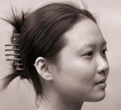 This shot was taken with a 105mm lens on a dSLR and I think part of the reason it works is that the woman has an Asian face, so she can take being nearer to the camera.