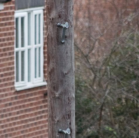 The shot was taken out of a motel window, with the pole about 200 feet away, at 800ISO 1/250sec and f7.1 – full frame and a 100% crop around the pole.