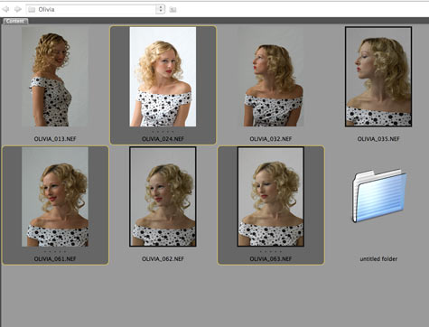 However, holding the Command key while clicking on thumbnails, highlights all the ones you click on. With multiple files highlighted, one can open them or one can move or copy them. It is this move facility that helps one to organize new images in Bridge.