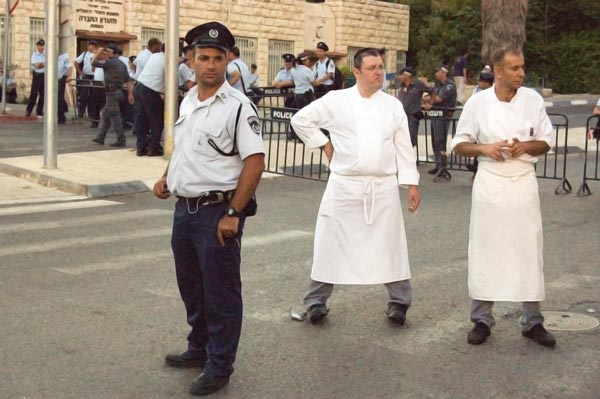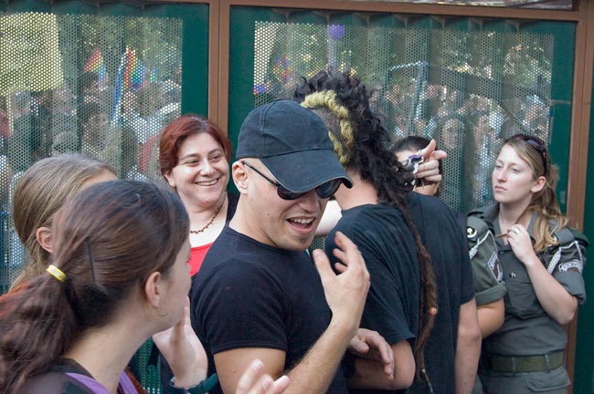 The occasion was a parade that was not greeted with universal approval. In the first shot, notice the stationary bus sideways on across the street, used to block off traffic.