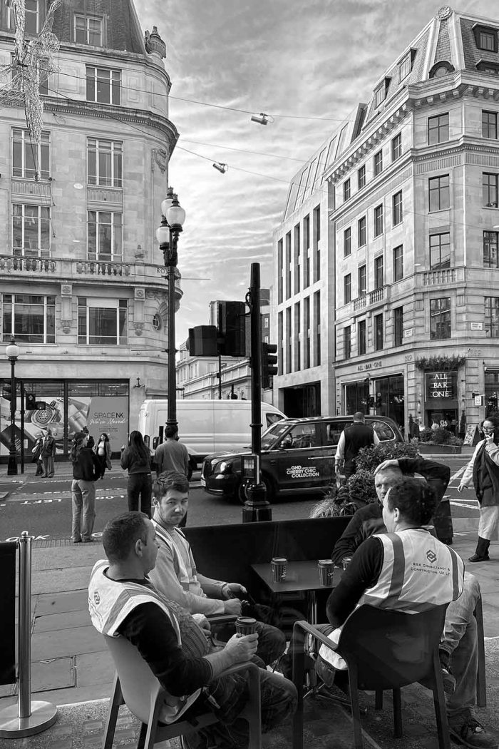 But it also has settings for less contrast, like the second photo below, looking out from a cafe on Upper Regent Street in London, and the third photo of leaves around a tree.
