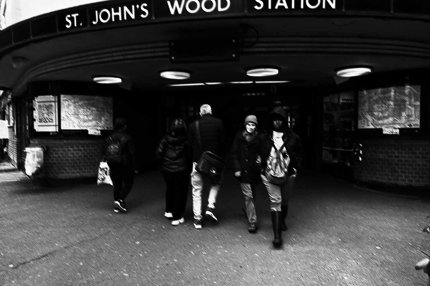 The Provoke app for iOS can be as provocative as you like because it has settings that emulate different amounts of contrast like this high contrast shot of the entrance to St John’s Wood Tube Station.